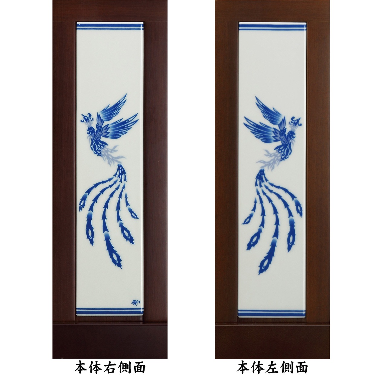 古来より成功、成長などの意味を持ち、縁起物として尊ばれてきた「鳳凰柄」を使用した側面の陶板は、有田焼を美術品として世界に広めた名門「香蘭社」で製造されております。