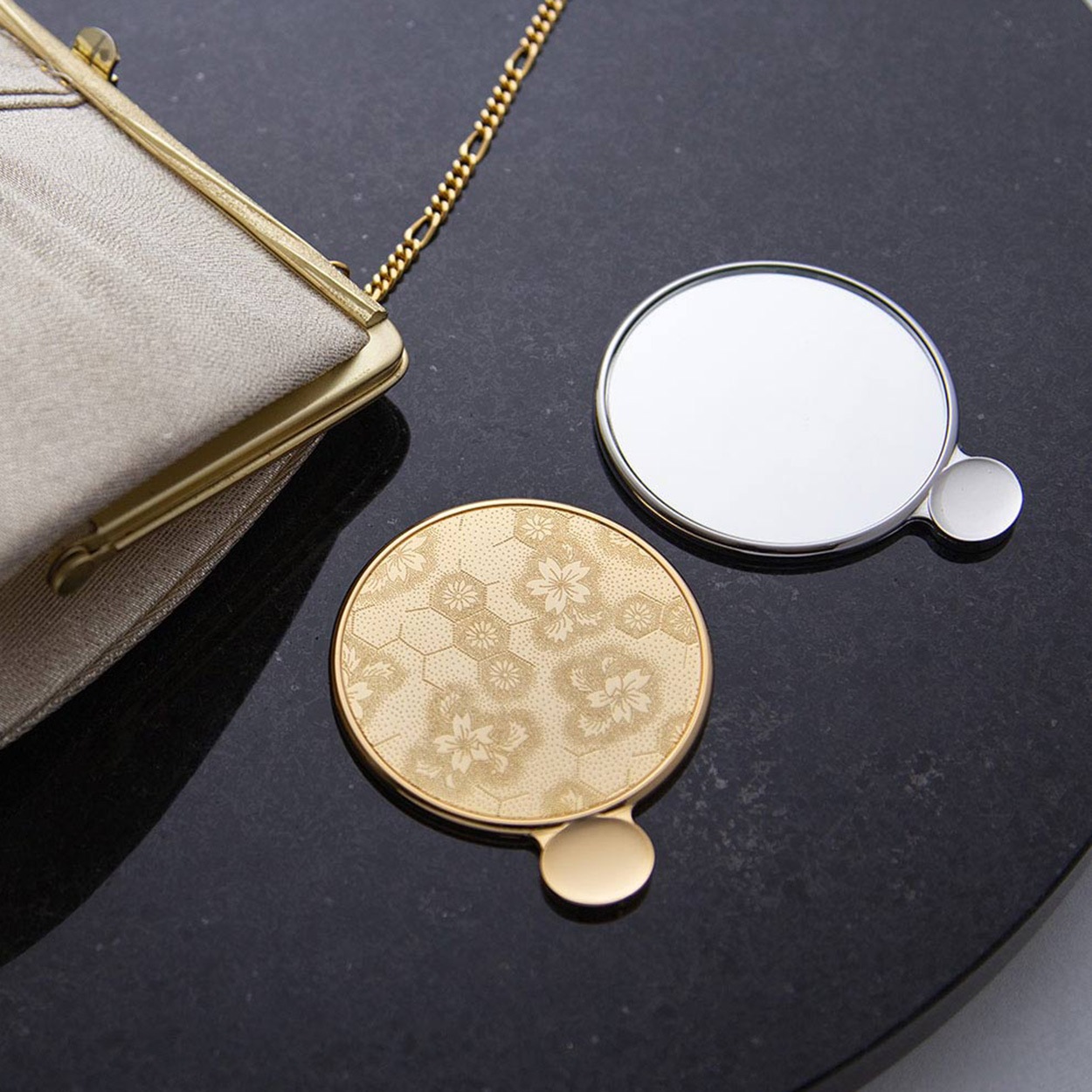 高級感ある手鏡は、贈りものに大変お勧めの逸品です。