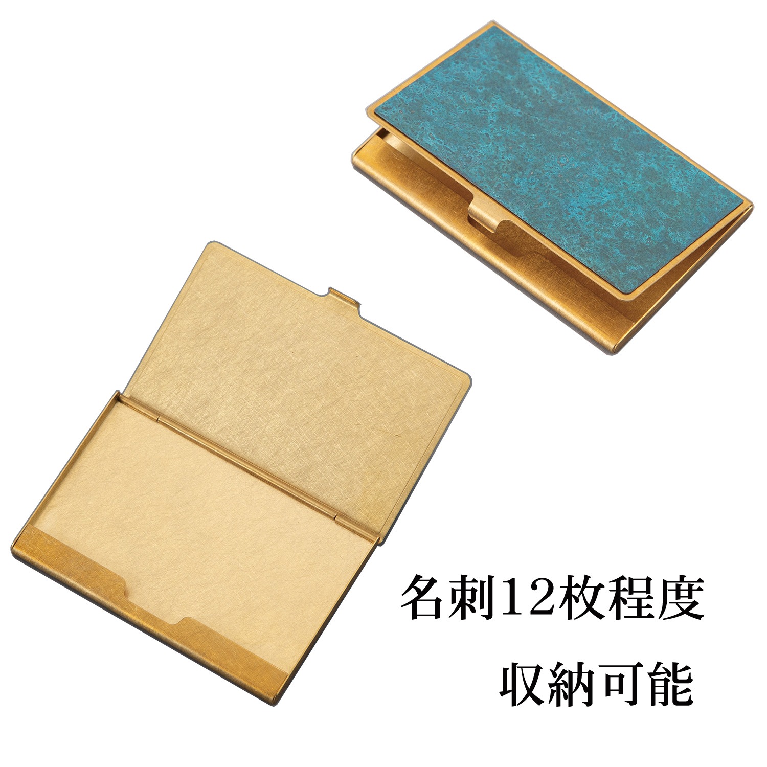 着色銅板のインパクトと落ち着いた真鍮の組み合わせが印象的な名刺入れ。
